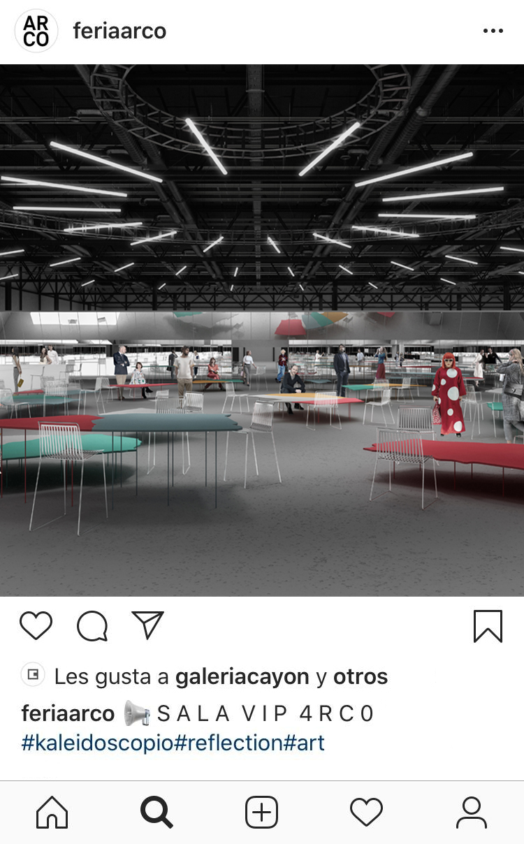 Kaleidoskopio es la propuesta presentada para la Sala VIP de la 40 Edición de ARCO-Madrid en 2021 por los arquitectos Jesús Donaire & María Milans del Bosch en colaboración con el artista Guillermo Mora y la diseñadora gráfica Inés Atienza.