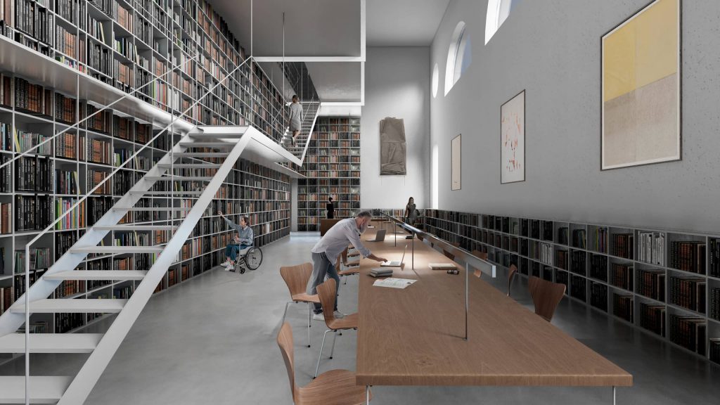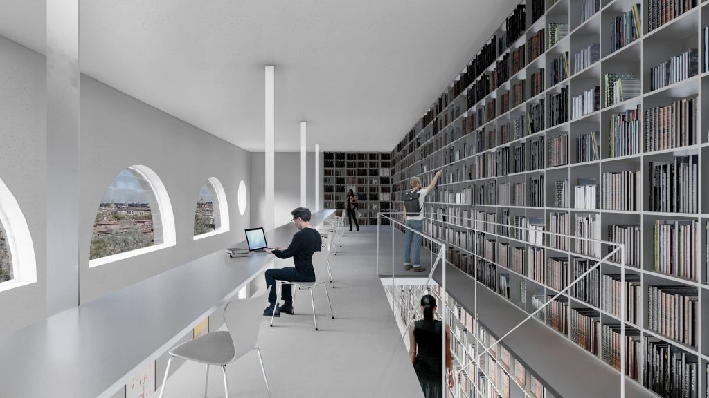 Se pretende asimismo reconfigurar funcionalmente algunas áreas singulares de la RAER ofreciendo una serie de espacios polivalentes que puedan hacer frente a las nuevas necesidades de producción en la era digital y de expansión cultural con la adhesión de nuevas disciplinas. Igualmente, se plantea potenciar el circuito museístico y crear nuevos estudios para el trabajo. De manera particular se dota a los residentes investigadores de un espacio- belvedere de trabajo sobre la biblioteca, un nuevo corazón, con las vistas más imponentes de la ciudad, ubicado entre las dos torres y equilibrando así la calidad de los espacios de trabajo de todos los residentes. Todo este esfuerzo económico debe tener una visibilidad acorde a las expectativas que se quieren ofrecer a la ciudad eterna, Roma, con un edificio con sus ventanas y sus puertas abiertas a su ciudadanía y a sus visitantes. Para conseguirlo, se presenta paralelamente a la propuesta arquitectónica un plan director en tres fases que permite de manera muy eficaz dar continuidad a la vida de la Academia durante las obras que se llevaran a cabo.